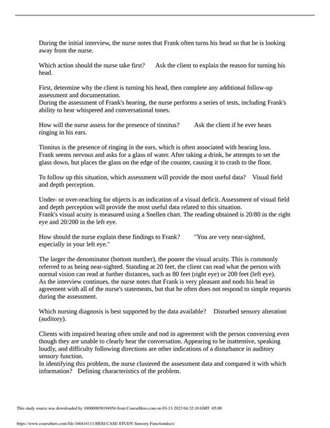 TNB - Free PDF Evolve Hesi Case Study Sensory Function rtf ManyBooks